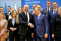 போலண்டனின் தலைநகர் மார்ச் 28, 2024. போலந்திற்கு உக்ரேனிய இறக்குமதிகள் மற்றும் பாதுகாப்பின் சர்ச்சைக்குரிய சிக்கல்களைப் பற்றி விவாதிக்க போலந்து-உக்ரைன் அரசுகளுக்கிடையேயான ஆலோசனையானது போலந்தில் தொடங்கியது. போலந்து பிரதமர் டொனால்ட் டஸ்க் மற்றும் உக்ரைன் பிரதமர் டெனிஸ் ஷ்மிஹால் (நடு) ஆகியோர் புகைப்படத்திற்கு போஸ் கொடுத்த உக்ரேனிய தூதுக்குழு போலந்துக்கு வார்சாவில் உள்ள உஜாஸ்டோவ்ஸ்காவில் பேச்சுவார்த்தை நடத்துகிறது.